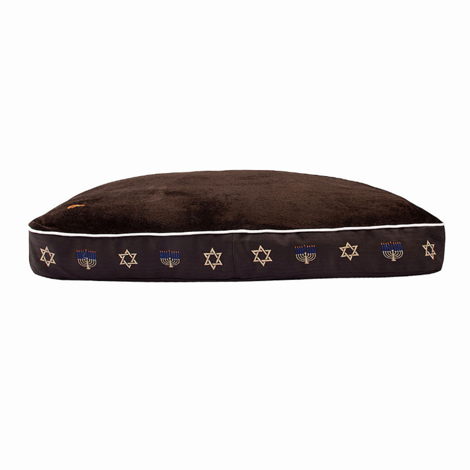 This perfectly soft, rectangular dog bed is sure to get you into the Hanukkah spirit with the Star of David and menorahs embroidered on the edge. The Halo Hanukkah Rectangular Dog Bed will provide your dog with a great snooze all night long! The cover is easily removed with a zipper and is machine washable.
